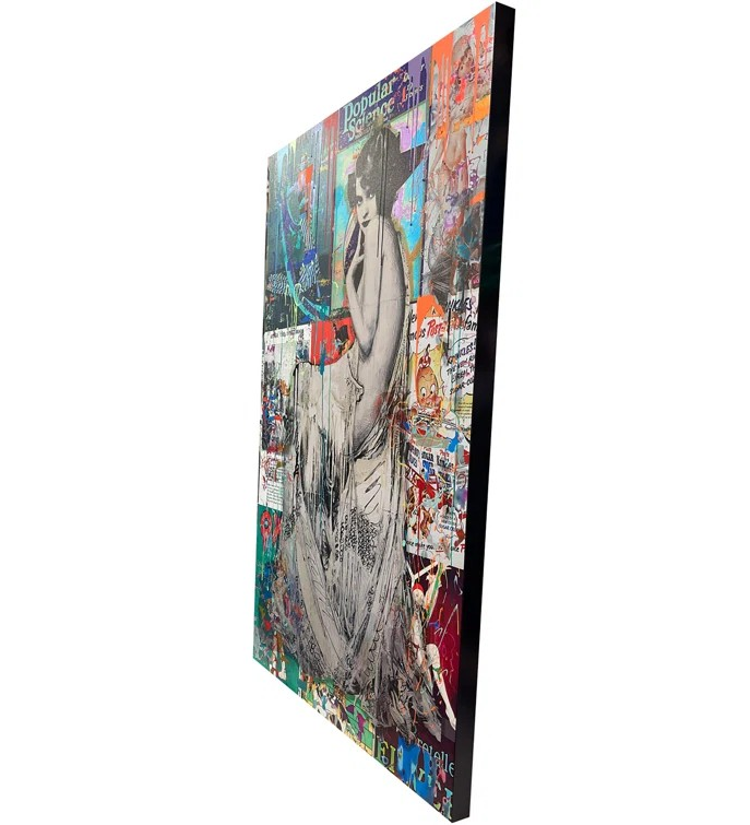 The Girl Next Door, A Wall Art Painting by Oliver Neilson, original mixed media on canvas.Hand signed by artist. Oliver Neilson was born in Queens, attended art schools from the age of 5 and later pursued a degree in Graphic Arts at the Fort Lauderdale Art Institute. Currently a resident of South Florida. His art can be found in galleries and exhibitions throughout the US. This artwork comes gallery wrapped. Image Size: 38×60.